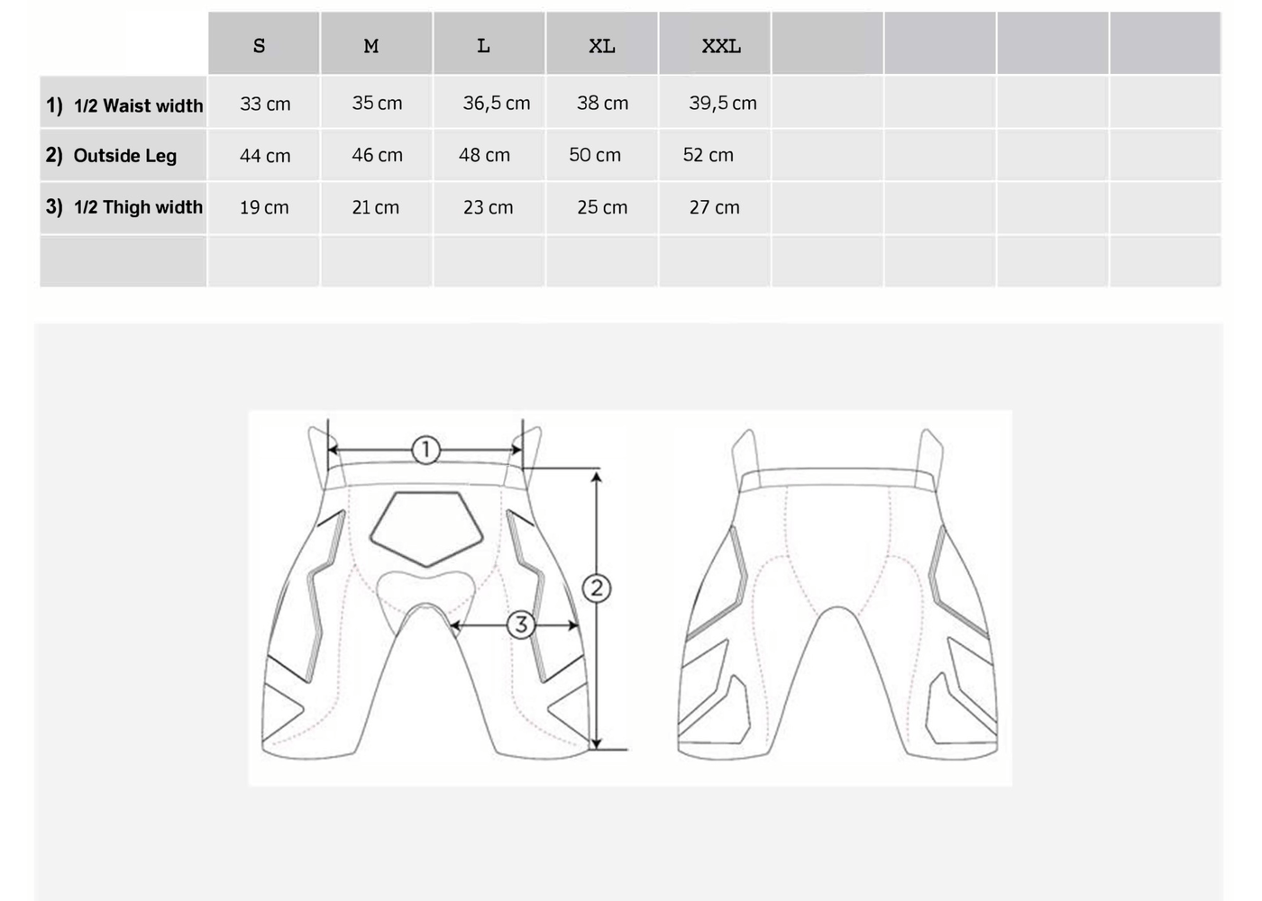 • Protective EVA plates placed on the coccyx and lower lateral/front thigh
