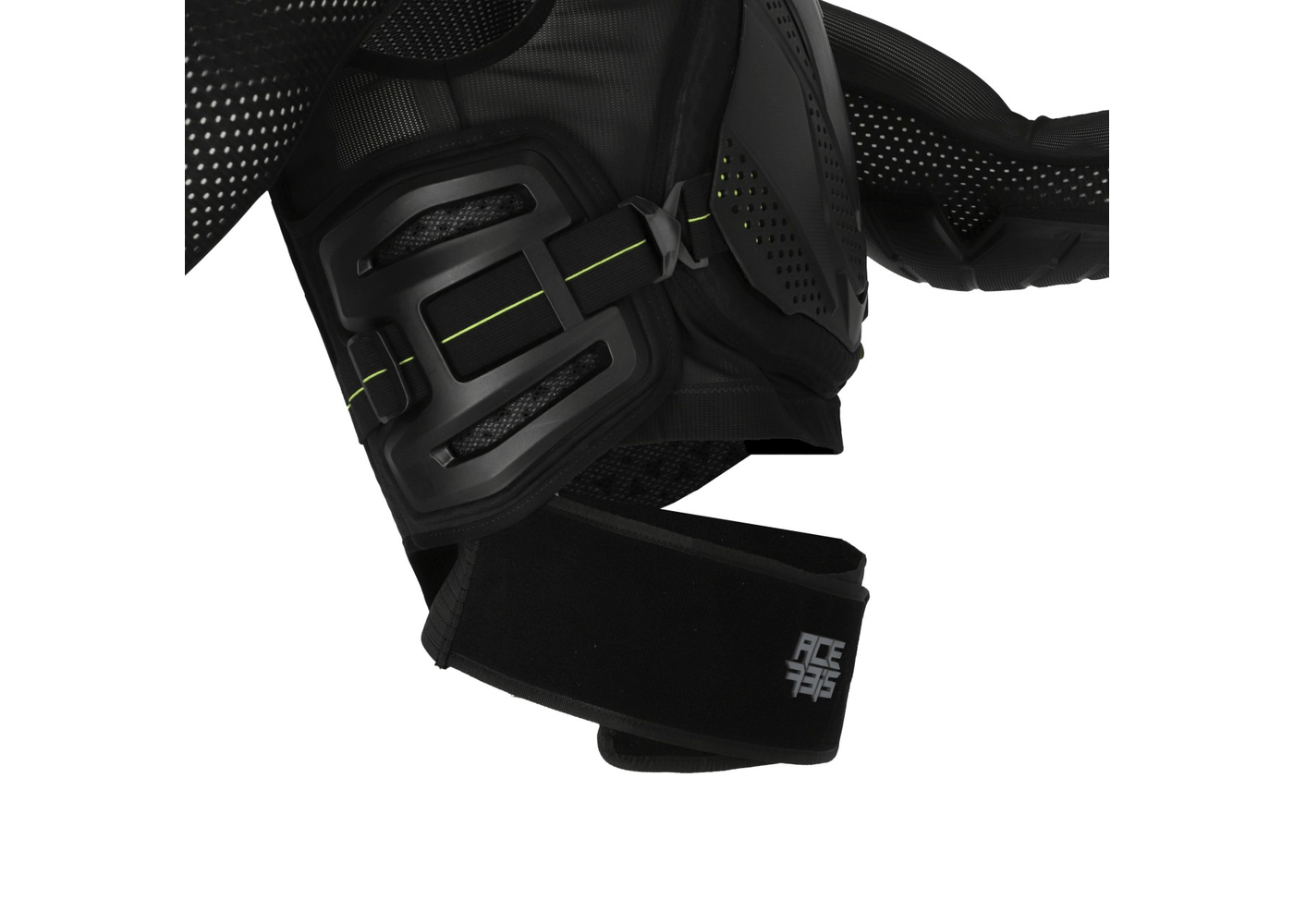 • Shoulder and elbow pads are designed to provide excellent protection and ease of movement. Front and back plates are supported by super-ventilated padding.