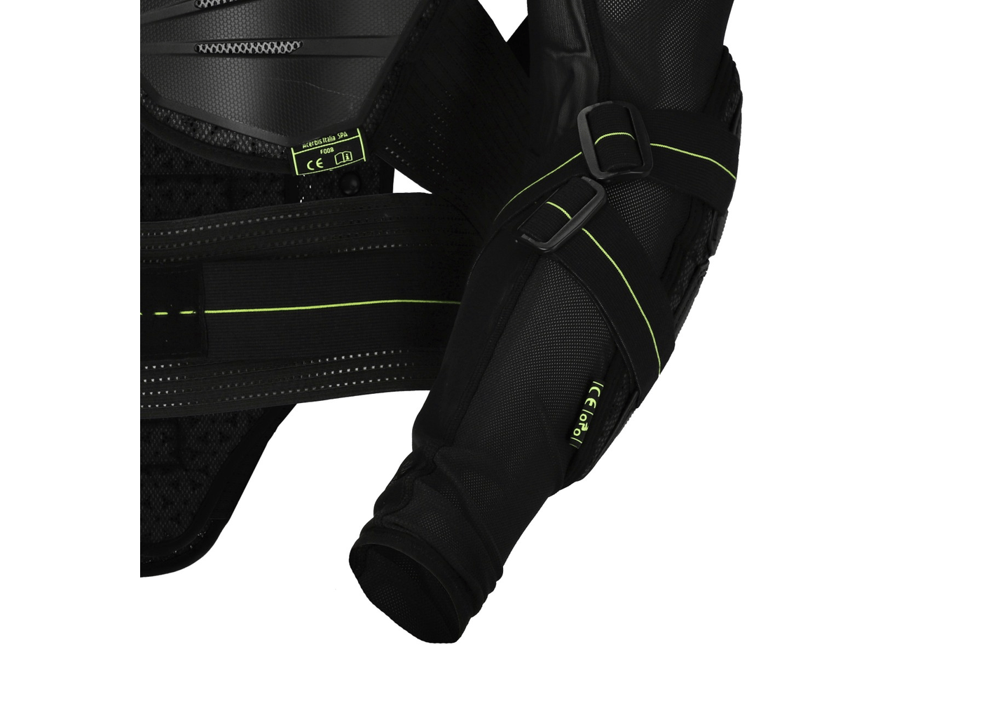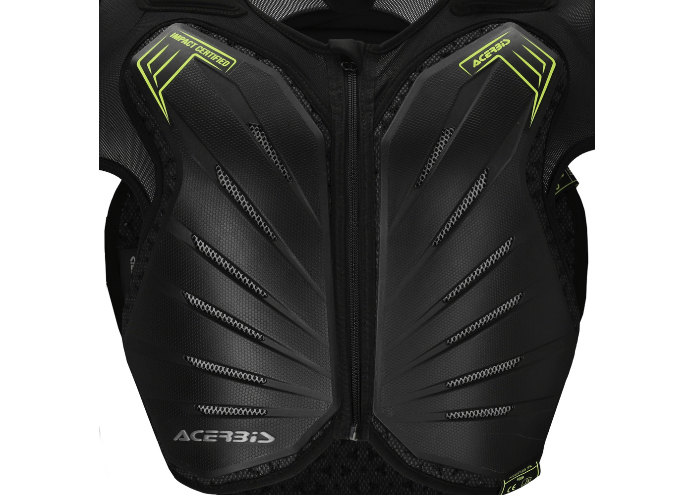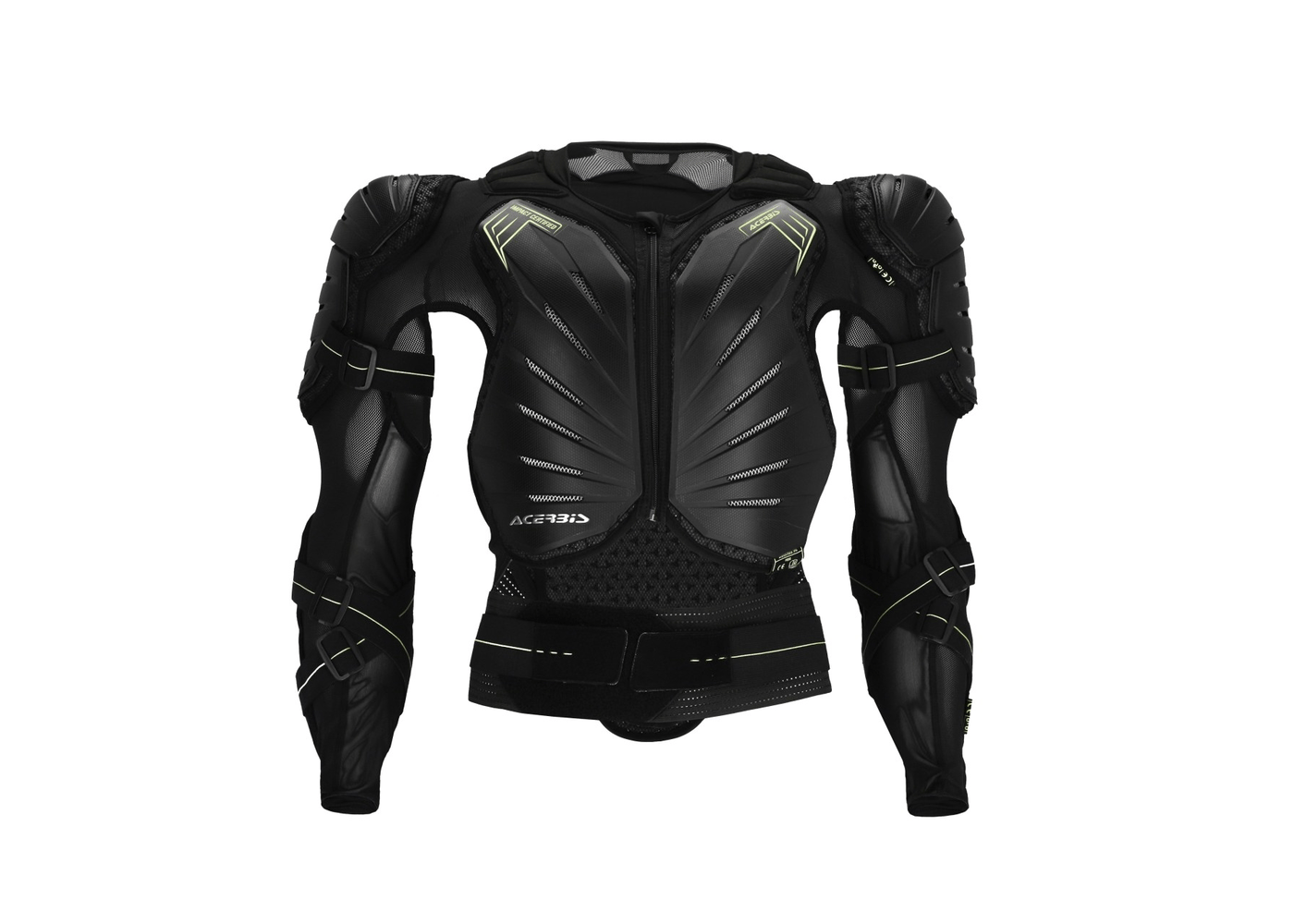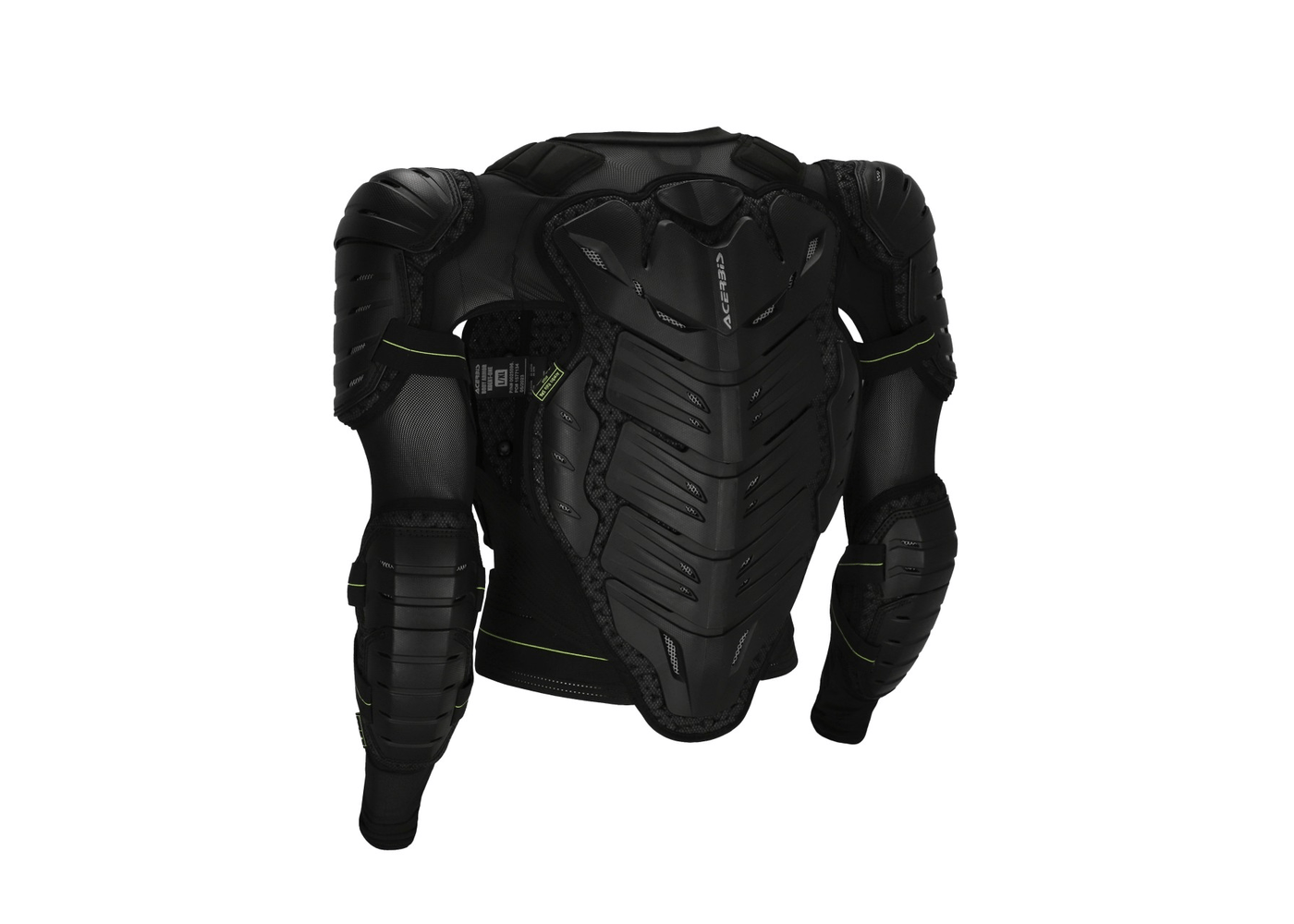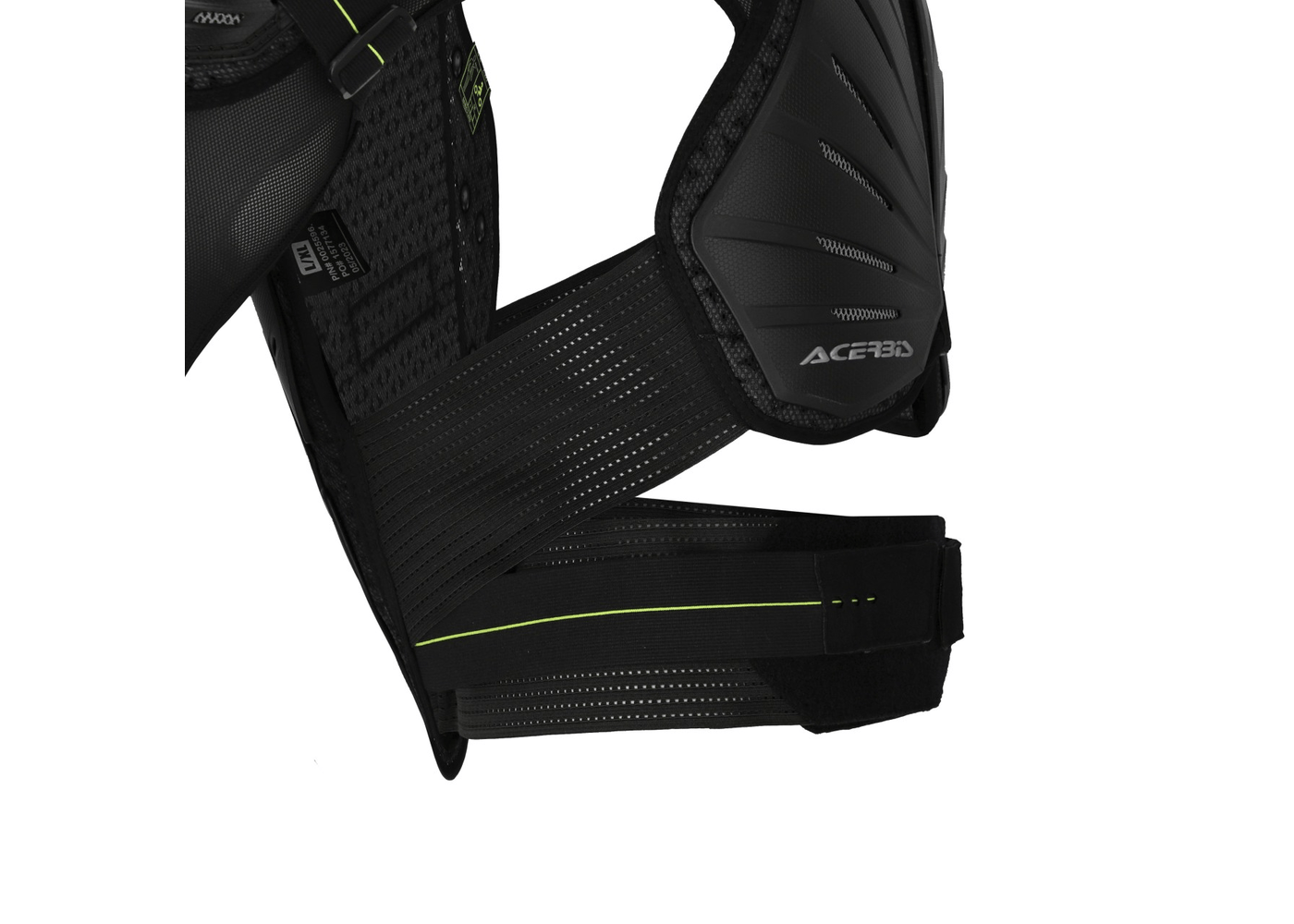 • Acerbis logo inserts on front and back plastics. Homologous loop stitching labels under plastic on chest, back, left shoulder, and left elbow.