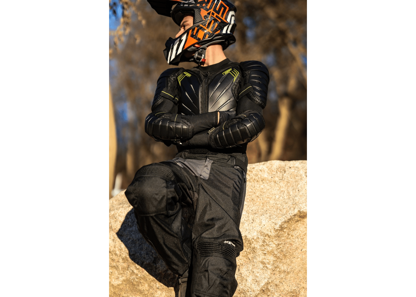 • The innovative construction combines the lightweight/action of a motocross bib and the protection of body armor.